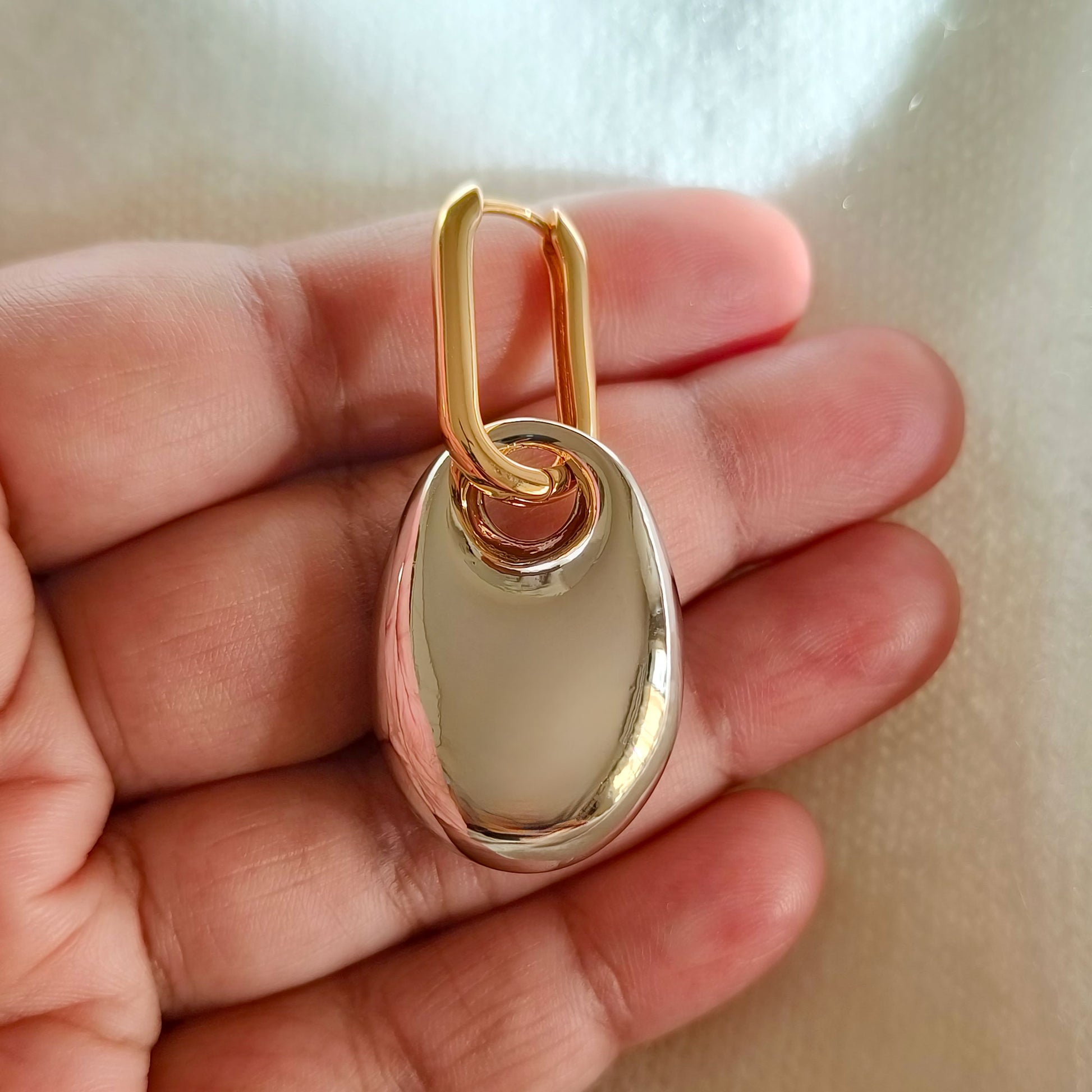 Adaline Gold & Silver Drops, Elegant and versatile, these drops combine golden and silver tones with a glossy finish and anti-tarnish protection. Perfect for cocktail parties, festive celebrations, or evening events, they bring a refined sparkle and contemporary charm to any outfit.