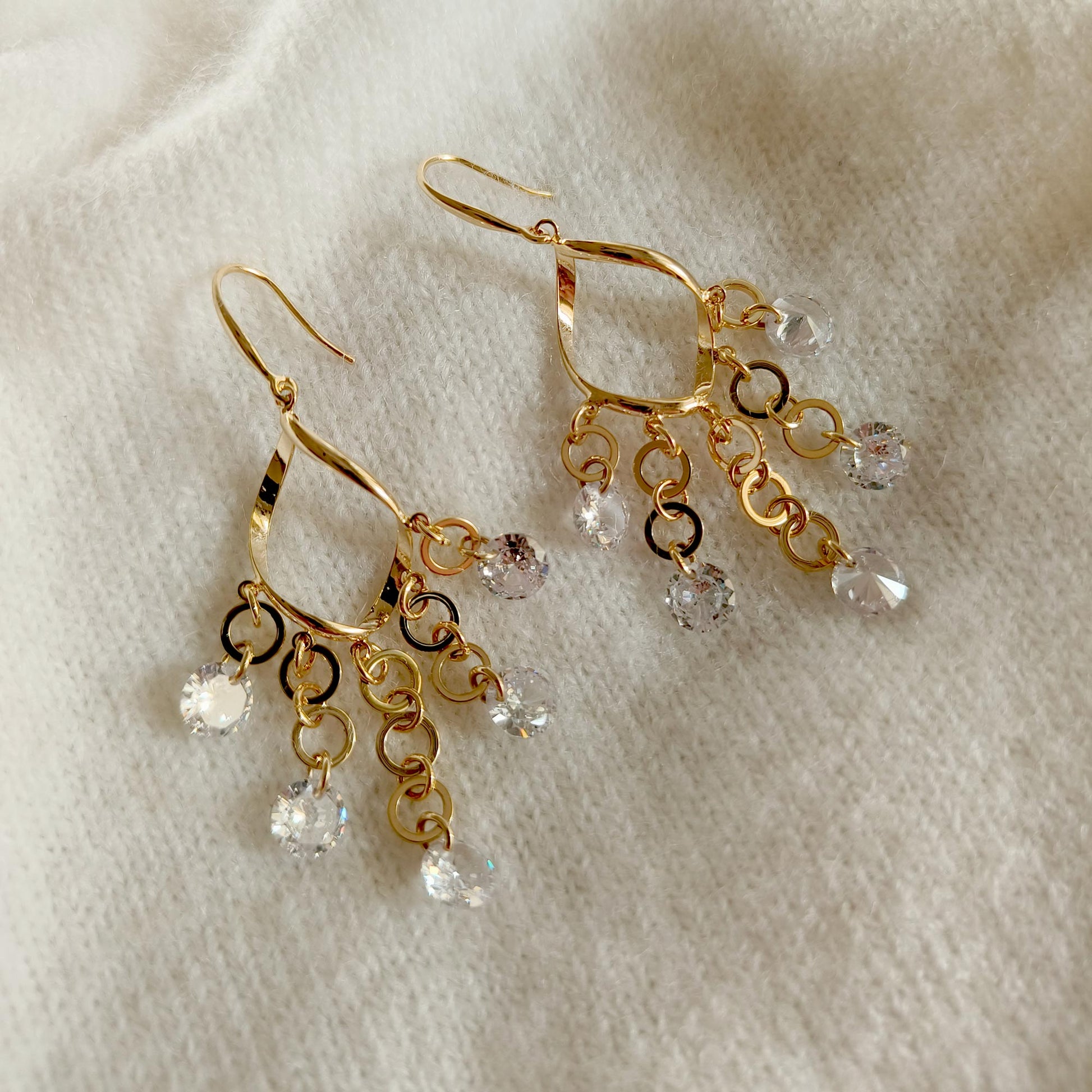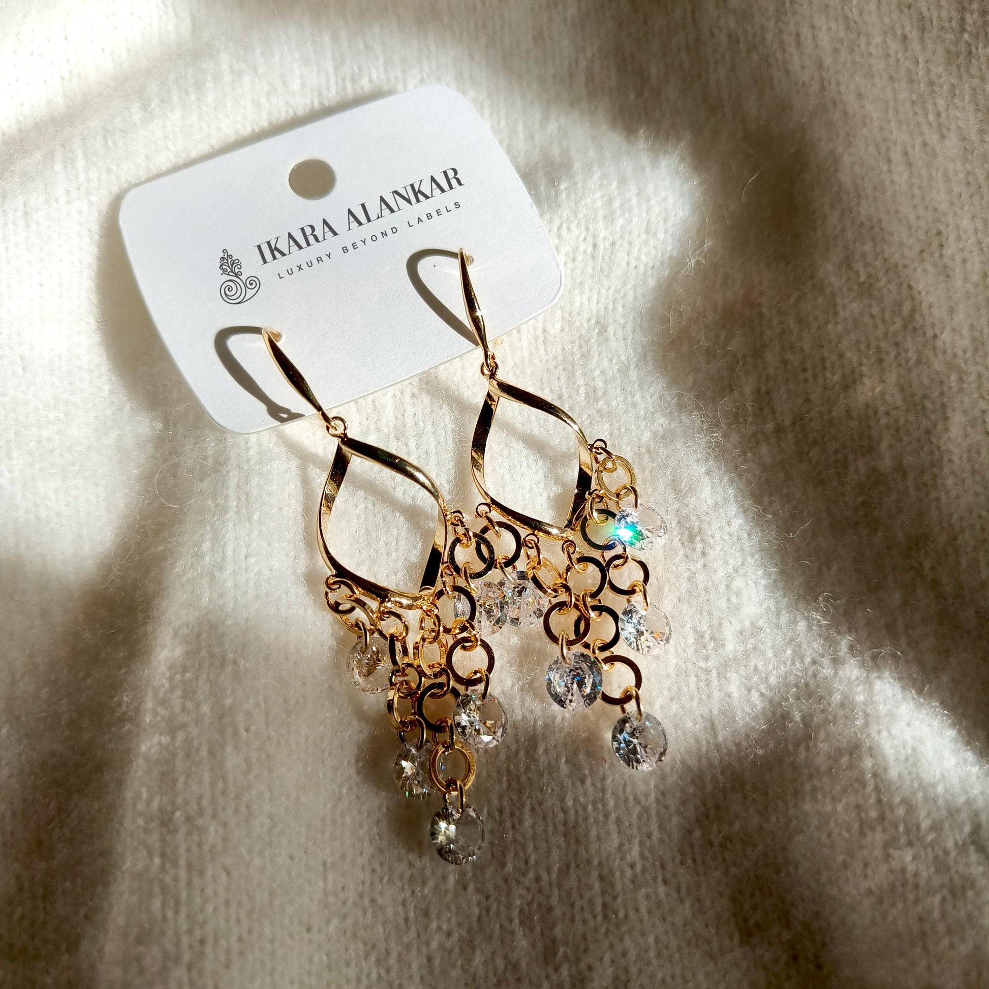 The Milan Crystal Chandelier earrings bring a refined sparkle to winter celebrations. Crafted in lightweight stainless steel with a glossy golden, anti-tarnish finish, they feature artistic textured elements paired with crystal accents for a modern festive glow. Perfect for Christmas soirées, New Year parties, or elegant winter evenings, these chandeliers add a graceful shimmer without overwhelming your look.