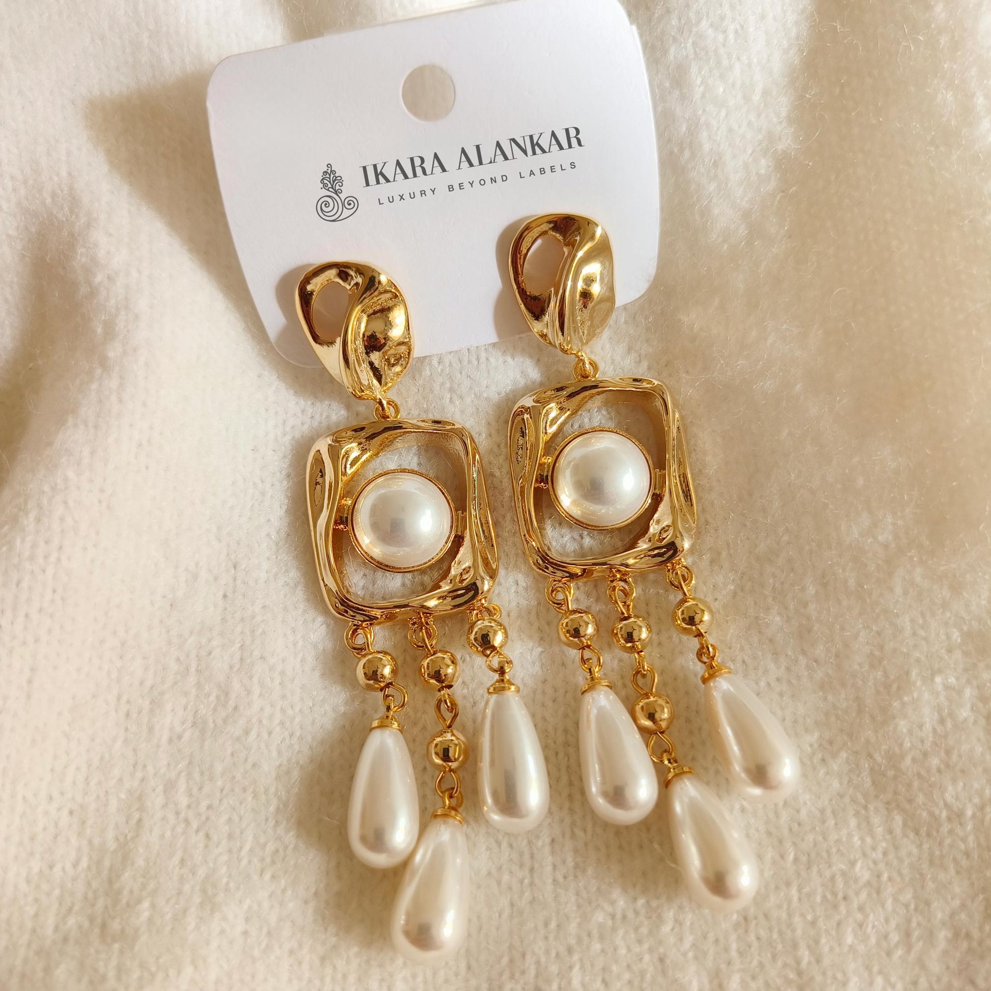 Pair these statement danglers with a sleek bun and silk saree or an off-shoulder gown for an effortlessly glamorous, pearl-kissed festive or evening style.